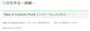 Table of Contents Plusをインストールして目次を作れる・・と思ったら作成されていない!