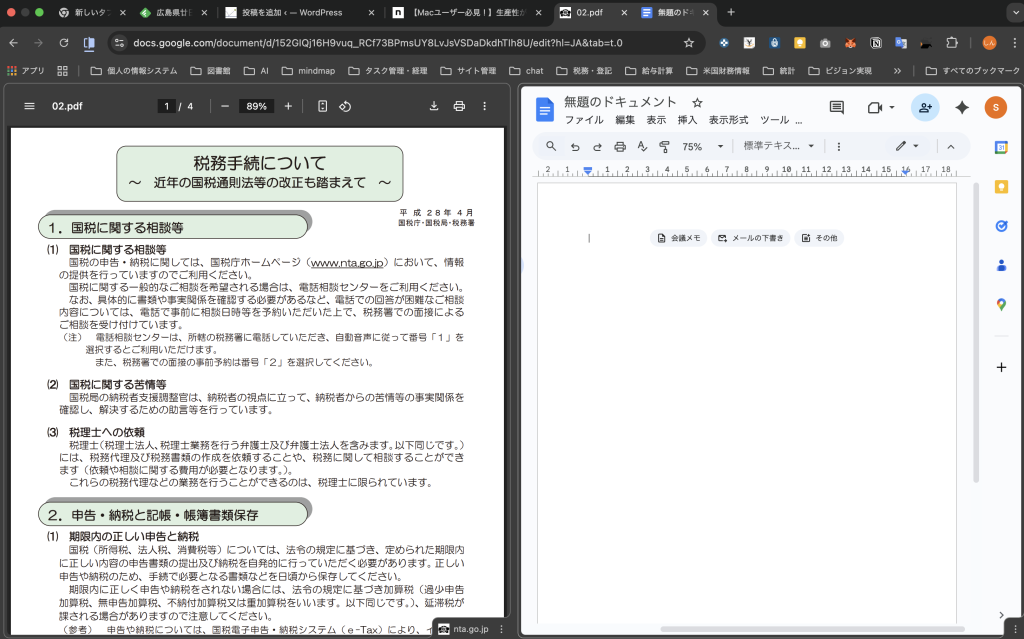 - PDFを見ながら、SpreadsheetやDocumentを作成する(研修等、資料を参照しながら感想を書くとか良いかも)