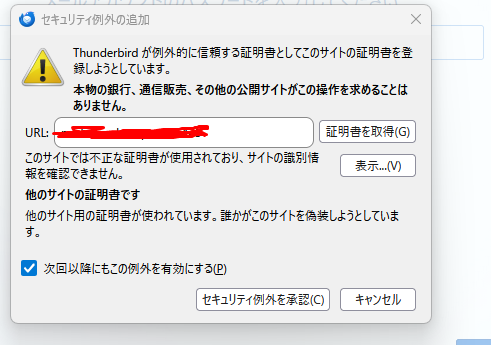 この後、名前、メールアドレス、メールアドレスのパスワードを求められるがさくらインターネットのサーバーパスワードとは別です。「さくらインターネット メールパスワードを変更したい」の記事で場所がわかります。