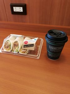 今日の朝ごはんトルティーヤ・チキンとコーヒーです。