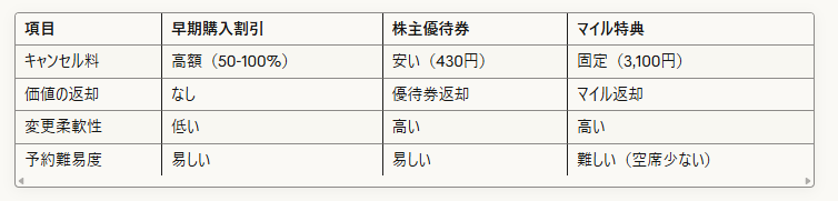 マイルのための席数が限定されて繁忙期であれば予約難易度が高い、ということになります。