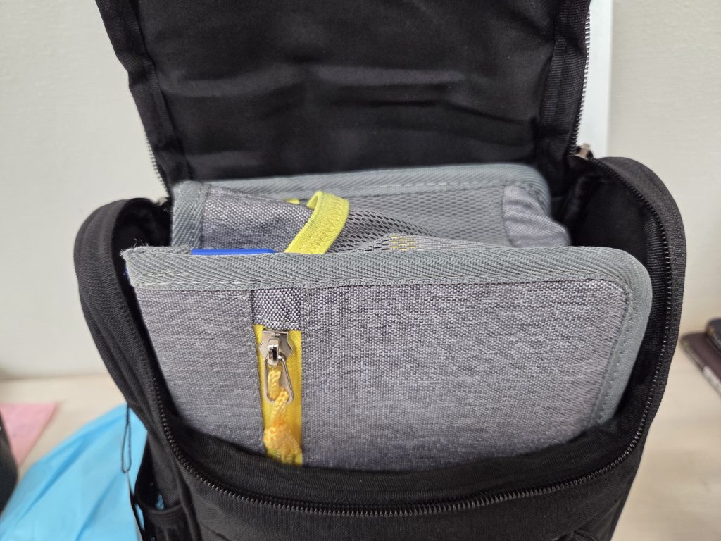この中にiPadminiとまだ届いていない折りたたみキーボードとB5のペーパーを入れたらもういっぱいですね。