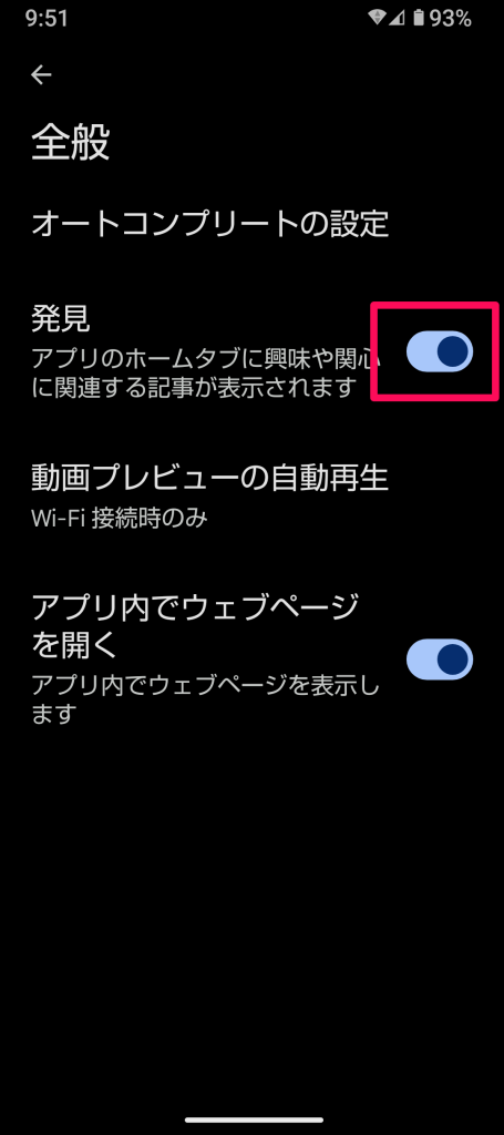 それ以外で、先程のGoogleマークアプリにDiscoverを表示しない方法を次善の策として挙げておきます。