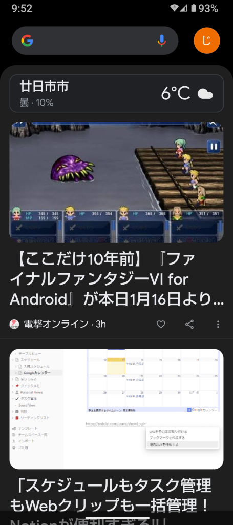 スマホの下の方にもDiscover機能として興味ありそうな情報ということで検索枠の下に表示されます。